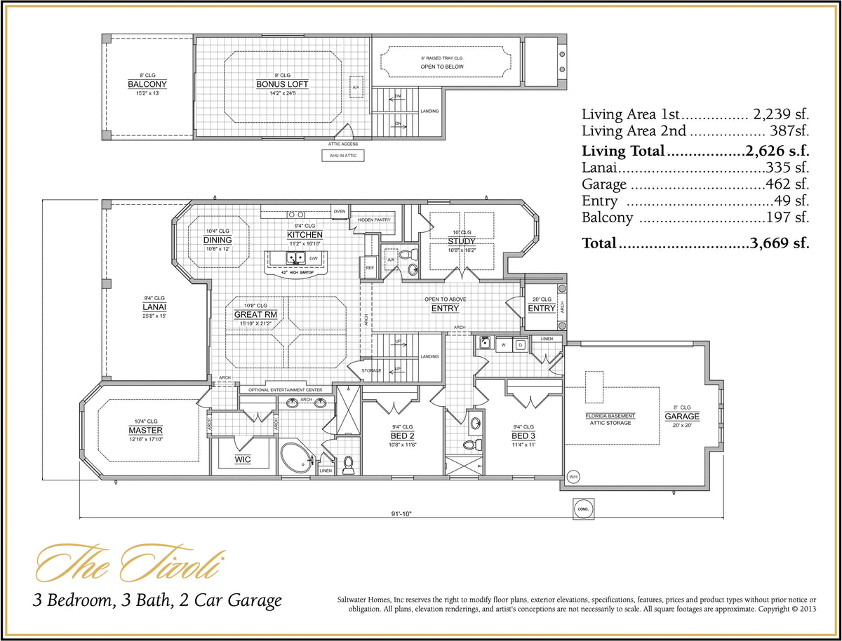 This outstanding two-story home features lanais, porches, and balconies for unobstructed views from all areas of your living paradise. The Tivoli, named for it’s alluring effects, sets itself apart from the rest. This well designed floor plan includes a family room on the first floor with guest suites, as well as a main living area on the second floor. The open kitchen compliments the dining room and is perfect for entertaining. The Tivoli; a home; a lifestyle.